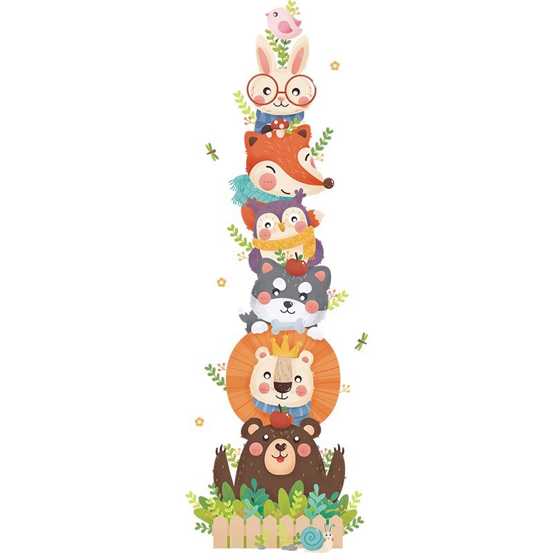 Stiker Dinding Pengukur Tinggi Badan Anak Gambar Hewan Harimau